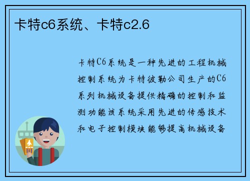 卡特C6系统是一种先进的工程机械控制系统,为卡特彼勒公司生产的C6系列机械设备提供精确的控制和监测功能。该系统采用先进的传感技术和电子控制模块,能够提高机械设备的操作效率和安全性。下面将从多个方面对卡...
